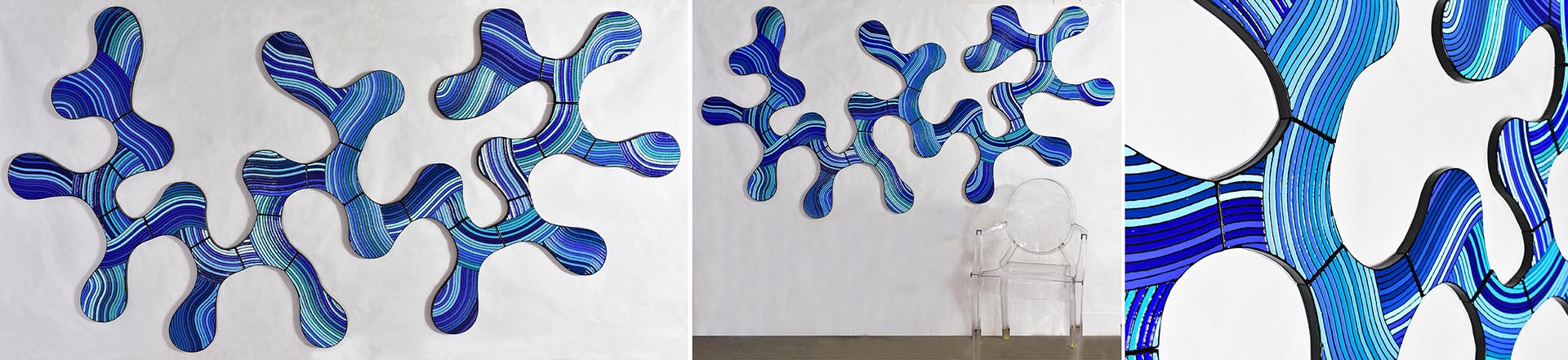 - Link 1 Wave | Dimensions: 252in W x 80in H | Medium: acrylic and high gloss resin on wood